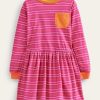Pagaminta iš patvaraus medvilninio trikotažo, ši ilgomis rankovėmis pasipuošusi megztinių suknelė suteikia jaukumo. kaklo ir rankogalių briaunelės užtikrina tobulą šilumos kiekį, o audinys su šepečiu yra itin minkštas.