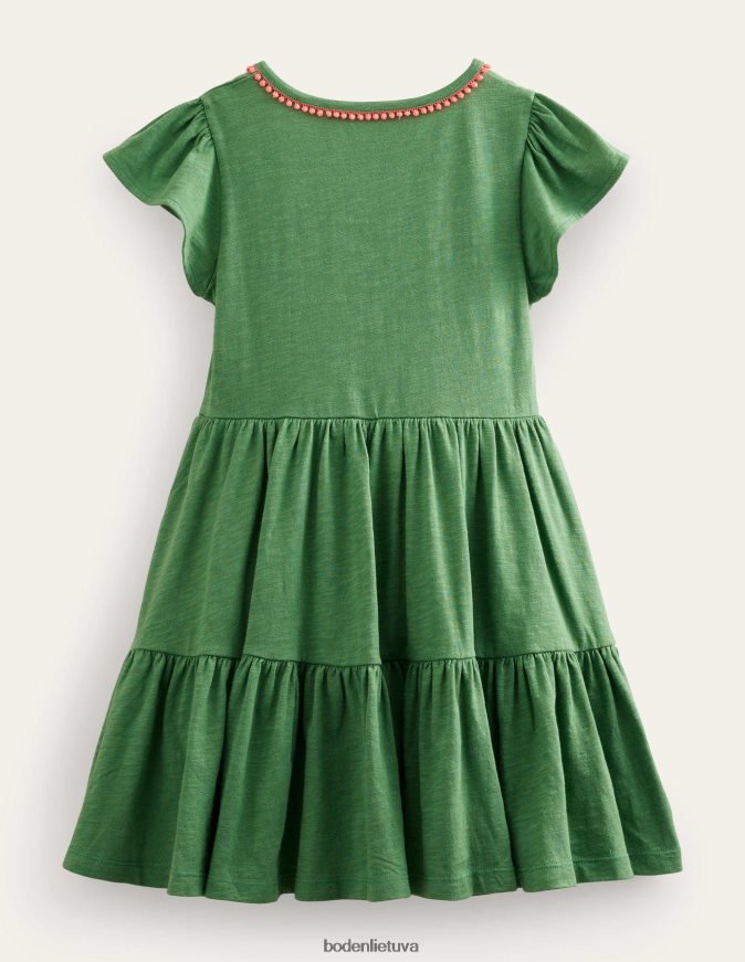 Su pom-pom apdaila, plazdančiomis rankovėmis ir daugiapakopiu sijonu šokių vakarėliai yra svarbiausias šios medvilninio trikotažo suknelės darbotvarkės tikslas.