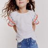 Atidžiau pažvelkite į šį išsamų viršų. reikia grožėtis išsiuvinėtomis broderio detalėmis. jai suteiktas galutinis žydėjimas su dailiu gėlių raštu.