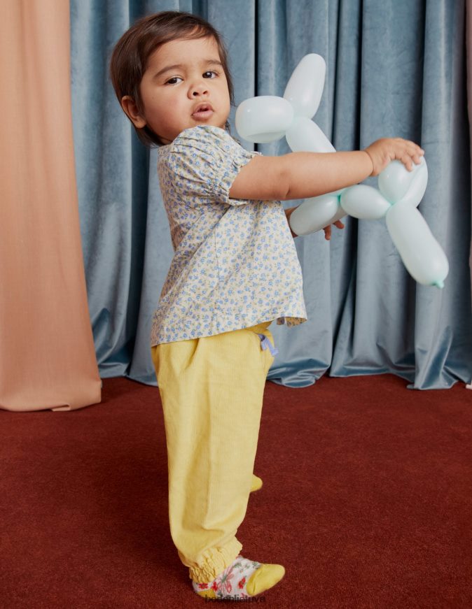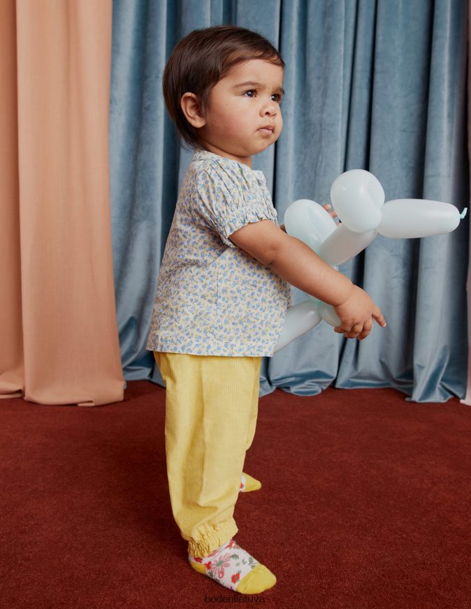 Gėlių raštas ir raukiniai papuošimai daro šį kvėpuojantį medvilninį žaidimų rinkinį žaviu pasirinkimu. elastiniai rankogaliai apatinėse dalyse užtikrina komfortą.