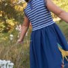Pustos petnešėlės ir siūbuojanti šios erdvios medvilninės suknelės forma suteikia jai tikrą vasarišką pojūtį.