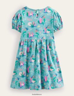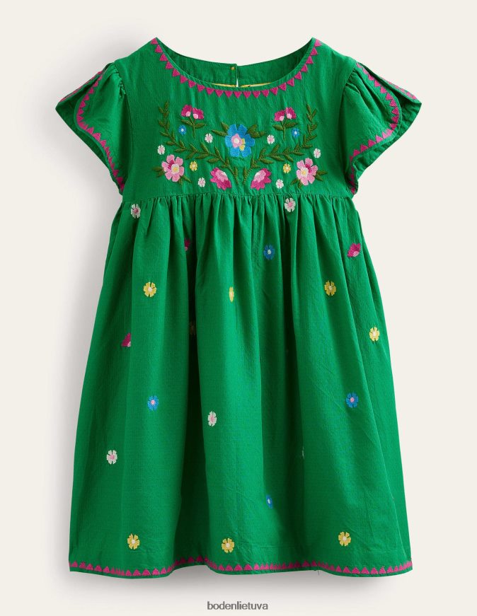 sudėtingi gėlių siuvinėjimai puošia šios suknelės priekinę dalį, o švelnus raižytas sijonas yra švelnus. jis pagamintas iš medvilnės su plazdančiomis rankovėmis ir užsegama rakto skylute.