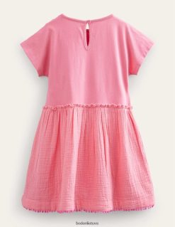 dabar čia yra kasdienė suknelė, kuri yra tiek praktiška, tiek linksma. padarėme jį iš medvilnės, kad būtų pralaidumas orui, o žaismingos detalės yra siuvinėti ties pečiais.