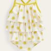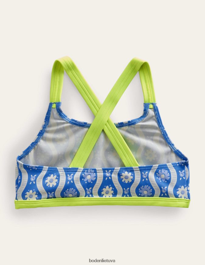 apranga lt Boden mergaites bikinio viršutinė dalis per nugarą Penzance Blue Daisy banga 284XZZ3070