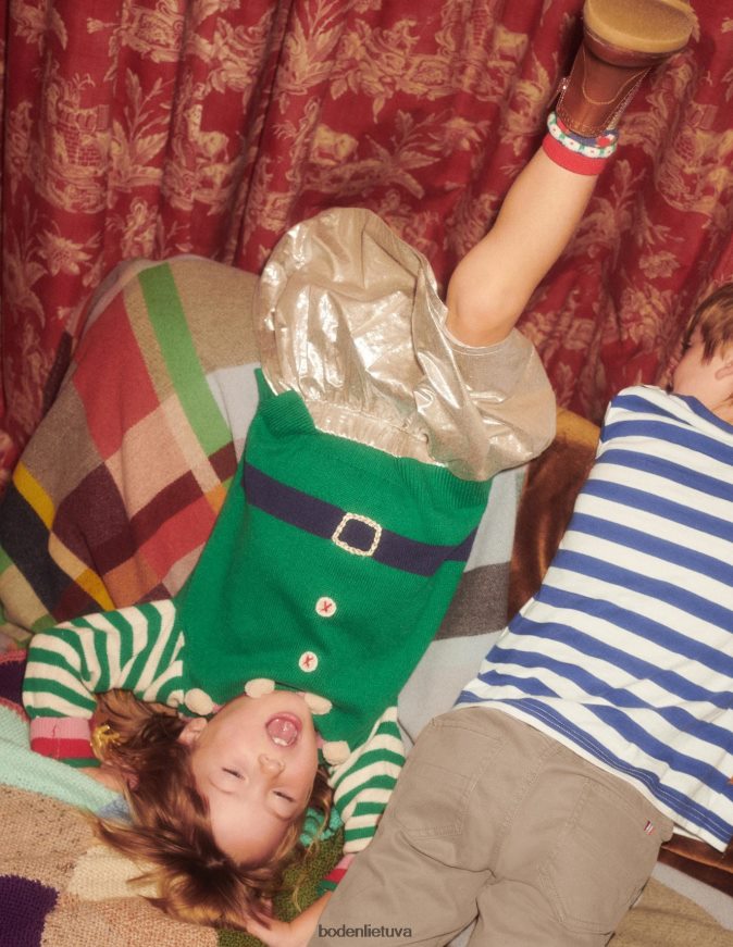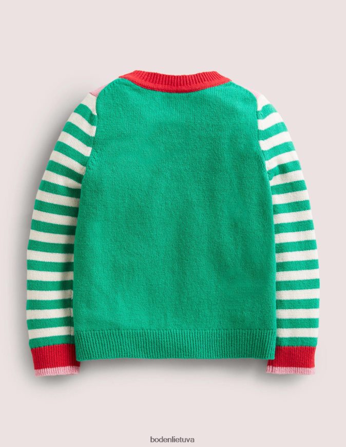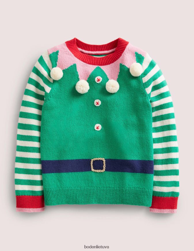 Su šventiniais sniego gniūžtės pomponais mūsų žalias juosteles kalėdinis džemperis leis mažiesiems Kalėdų Senelio pagalbininkams jaukiai praleisti laiką šaltiniuose nuotykiuose.