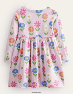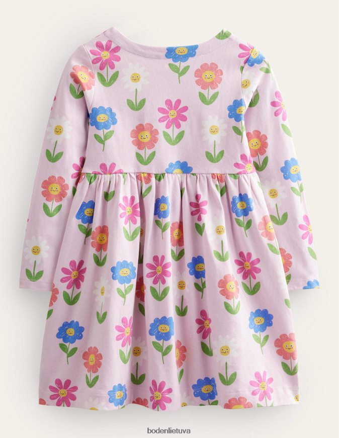 Mūsų linksma džersio suknelė yra su ilgomis rankovėmis ir dieną šviesinančiais raštais. tiesiog pridėkite rudens nuotykių.