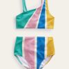 Pajūrio nuotykių ieškotojai žino, kaip stilingai statyti smėlio pilis: šis tiulio puoštas maudymosi kostiumėlis. su kontrastingomis raukinių apdaila, rinkitės iš dviejų ryškių blokelių spalvų.