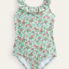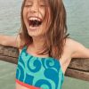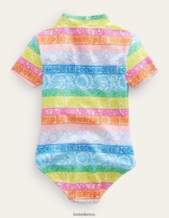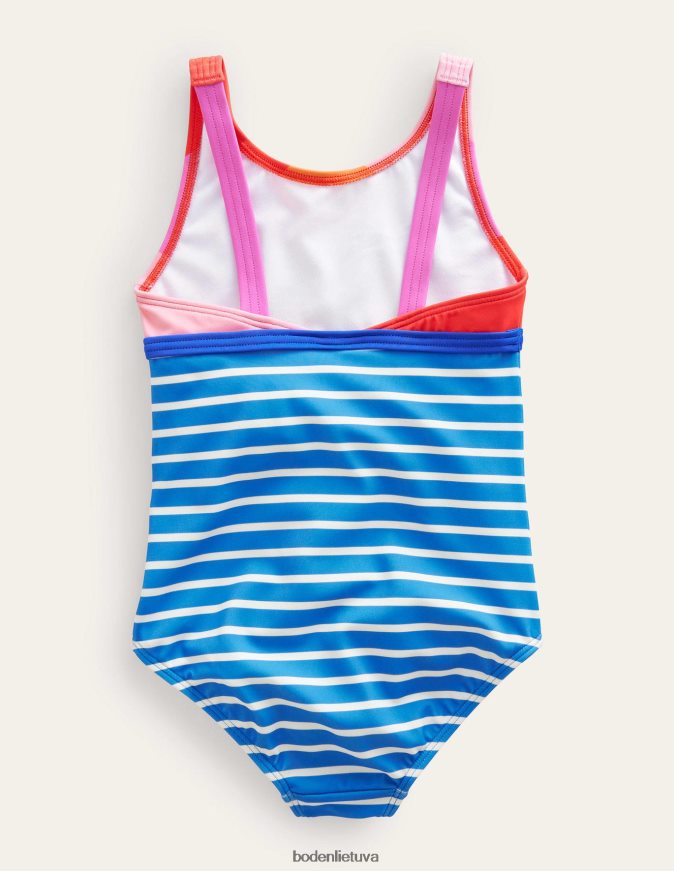 šiame saulėlydžio rašto maudymosi kostiumėlyje jie tikrai atrodys stilingai. jis dar labiau pagyvintas kontrastingu juostelių raštu ir su apvaliu kaklu ir plačiais nugaros dirželiais.