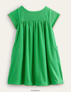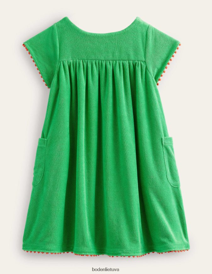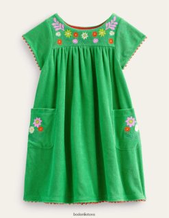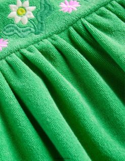 Ši rankšluosčių suknelė yra minkšta kaip žiedlapis. Pridėjome daugybę išsiuvinėtų gėlių ir eilę pomponų, kad pasveikintume pavasario dienas.