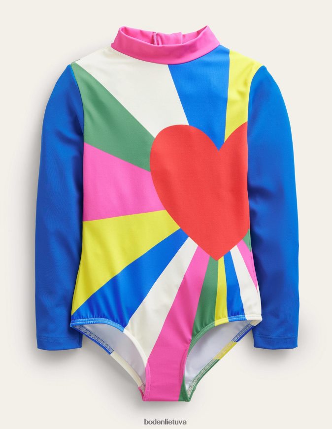 Vandens gerbėjai gali praleisti dar daugiau laiko besitaškydami su šiuo maudymosi kostiumėliu su ilgomis rankovėmis ir aukštu kaklu, užtikrinančiu maksimalią apsaugą. vaivorykštės atspalviai ir didelė širdis atrodys žaviai dienomis paplūdimyje.