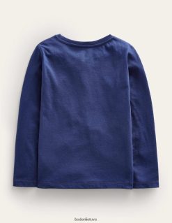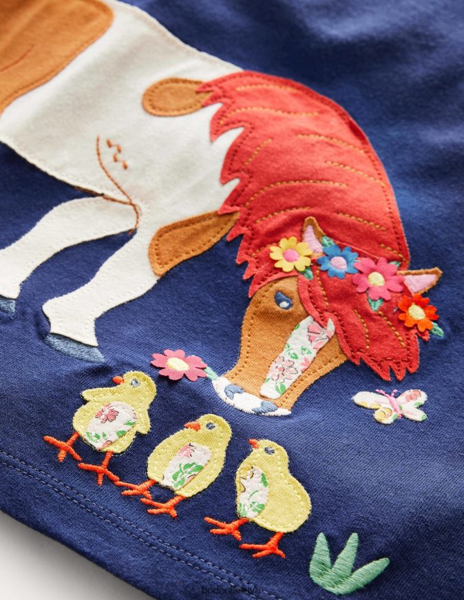 apranga lt Boden mergaites viršutinė dalis su aplikacijomis ilgomis rankovėmis dešinysis mėlynas arklys 284XZZ2869