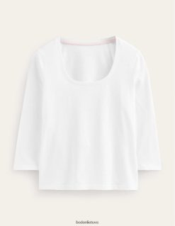 šis tamprus medvilninio trikotažo viršus yra paprastas kasdienės išvaizdos pagrindas. jis turi 3/4 ilgio rankoves ir prigludusį siluetą, kuris apglaudžia kūno kontūrus, kad atrodytų dailiai.