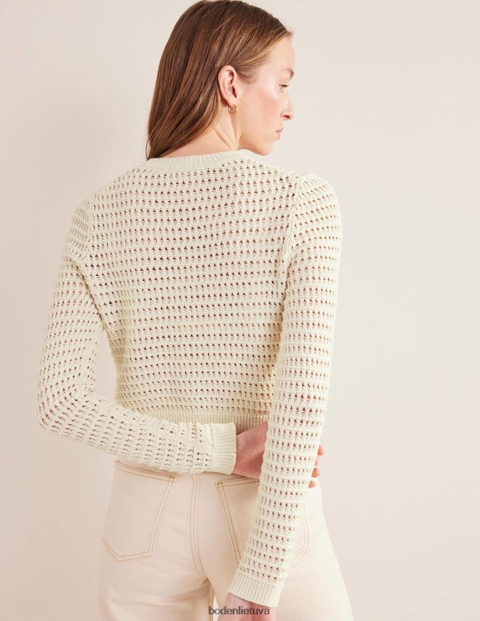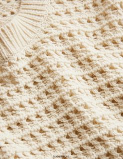Šis stambaus mezgimo megztinis buvo nertas iš medvilnės, kad būtų pusiau aptemptas, apkarpytas siluetas. Susikurkite savo stilių su aukštais džinsais ar sijonais.