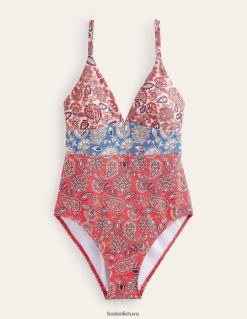 Šis maudymosi kostiumėlis su V formos iškirpte ir reguliuojamais dirželiais išlygina, formuoja ir palaiko. rinkitės iš tekstūruotų arba spausdintų stilių.