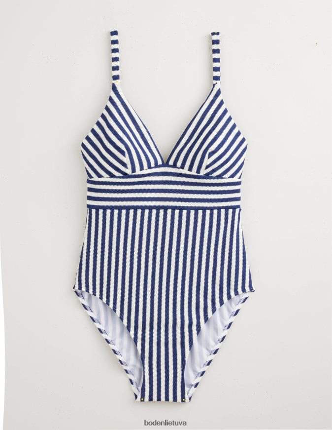Šis maudymosi kostiumėlis su V formos iškirpte ir reguliuojamais dirželiais išlygina, formuoja ir palaiko. rinkitės iš tekstūruotų arba spausdintų stilių.