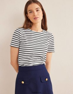 Dryžuotas marškinėliai yra klasika ir šis ramus medvilnės stilius nėra išimtis. apsirenkite arba apsirenkite, kad tiktų savo dienai.