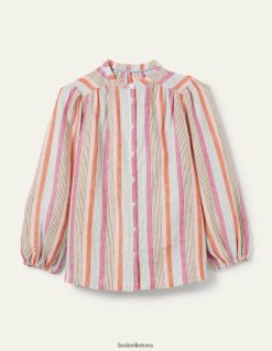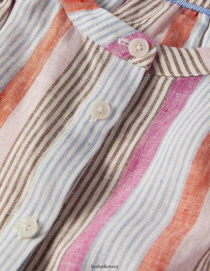 mūsų lininė palaidinė: elegancijos ir patogumo derinimo rezultatas. Suteikėme šiai senelio apykaklę, kad ji atrodytų elegantiška, papildanti atsipalaidavusią. Vidutinio ilgio rankovės yra sutrauktos, kad padidintų apimtį, o rakto skylutės yra rafinuotas klasikinio rankogalių variantas (užsisega sagute ir tampria kilpa). džiaugsmingam užbaigimui ant rankovių žydi ryškus botaninio stiliaus kontrastingų spalvų raštas.