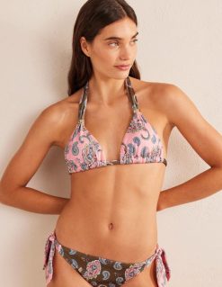 Paaukštintas trikampio bikinio stilius, šis viršus su karoliukais papuoštais kaklaraiščiais, todėl puikiai tinka.