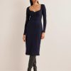 Apibrėžta mylimojo iškirptė ir prigludęs siluetas suteikia elegancijos su šia tamprios medvilnės midi suknele.