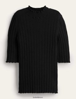 apranga lt Boden moterys briaunotas pointelle aukštu kaklu viršus juodas 284XZZ1474