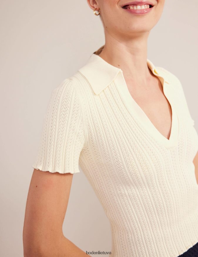 apranga lt Boden moterys briaunotas pointelle viršus su apykakle šiltas dramblio kaulas 284XZZ2109
