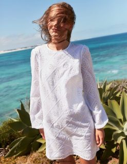 Jei ieškote universalios vasarinės suknelės, ši „broderie anglaise mini“ gali būti tokia. Dėl paprasto silueto jį lengva formuoti su viskuo – nuo treniruoklių iki kulnų.