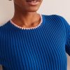 austas kintamo kabelio ir puantelės raštu, šis megztas apatinis trikotažas yra paprastas būdas suteikti jūsų išvaizdai tekstūros. jis yra pusiau prigludęs, kad būtų patogu, o nukirpti pečiai, todėl tinka ir vakare.