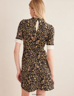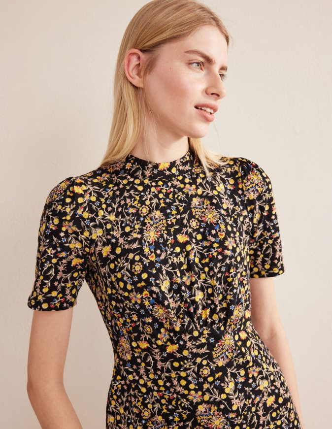 Ši paprasta trikotažinė mini suknelė atnaujinta su standžia apykakle ir švelniai susiliejančia ties juosmeniu. pritaikykite savo dienai.