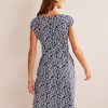 mūsų florrie suknelė pasiūta iš medvilninio trikotažo, todėl audiniui suteikiama subtili tekstūra. jis iškirptas pagal pritaikytą siluetą su dangtelio rankovėmis ir juosmeniu, kurį paryškina priekinė dėžutės klostė ir šoninės kišenės.