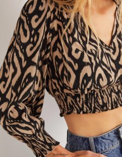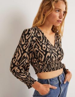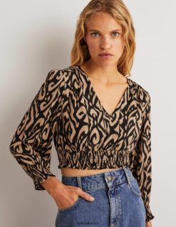 apranga lt Boden moterys grace crinkle coord top juoda ir ikat 284XZZ2002