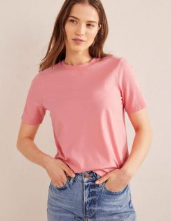 apranga lt Boden moterys grynos medvilnės marškinėliai su kaklu persikų šerbetas 284XZZ1853