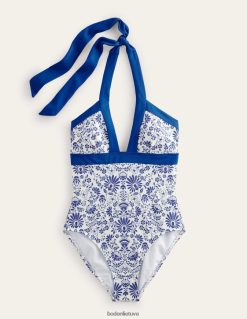 apranga lt Boden moterys ithaca halter maudymosi kostiumėlis dramblio kaulo ir ežero mėlynoji gardenija 284XZZ1079