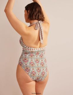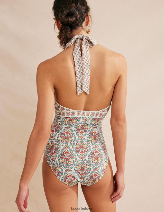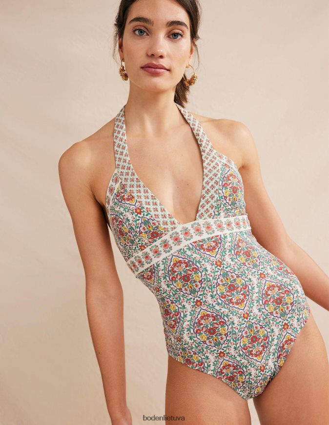Šis maudymosi kostiumėlis su reguliuojama apykakle ir skydinėmis dalimis yra su lengvai paminkštintais nuimamais kaušeliais, suteikiančiais formą ir atramą.