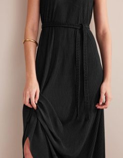 apranga lt Boden moterys jersey plisse maxi suknelė juodas 284XZZ925