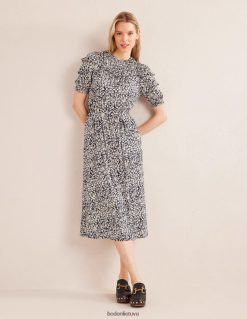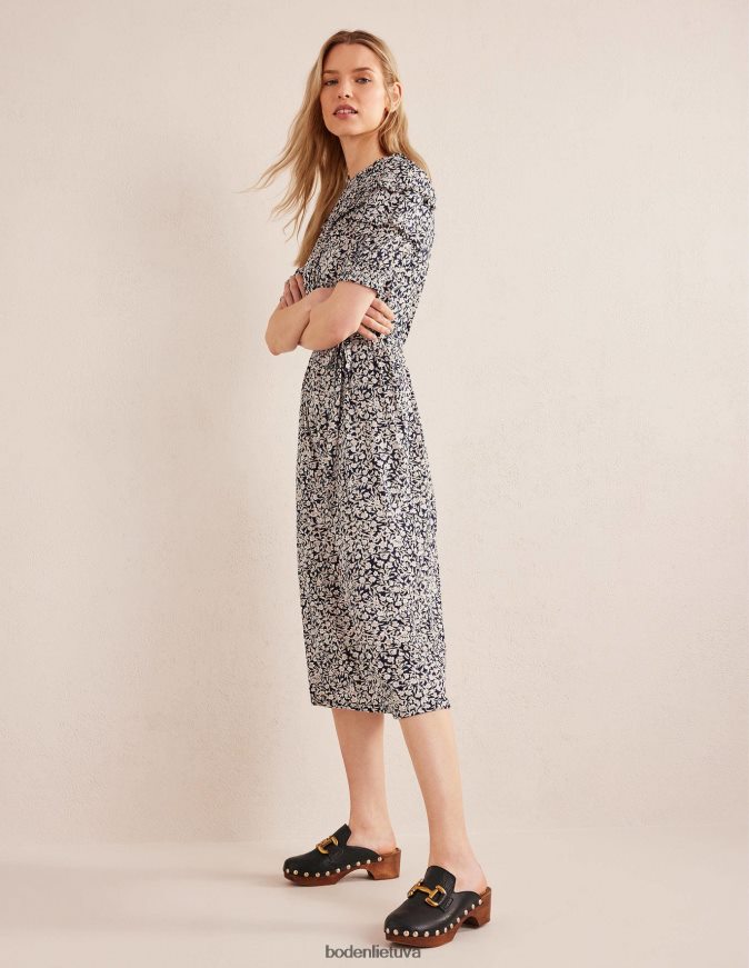 apranga lt Boden moterys jungo detalė trikotažinė midi suknelė prancūziškas laivynas ir abstraktus vynmedis 284XZZ1208