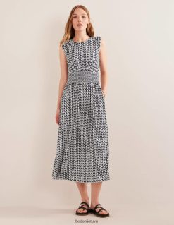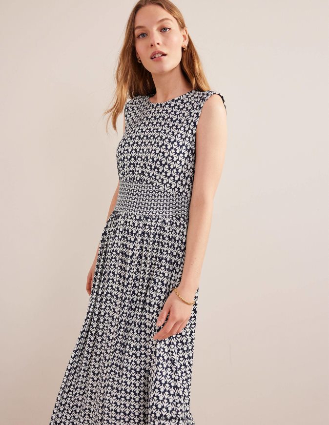 Kontrastingas juosmens skydas ant šios tamprios trikotažo midi suknelės suteikia šiek tiek formos ten, kur to norėtumėte. jis įspraustas per viršutinę dalį ir patenka į švelniai suglaustą sijoną, kuris siūbuoja judant.