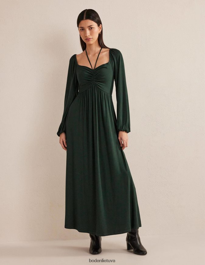 Smulkūs petnešėlės, susirišamos ties kaklu, todėl ši tamprios trikotažo suknelė yra romantiškas pasirinkimas paprastiems vakaro renginiams. pademonstruokite glostančią raižytą liemenį ir rankoves, paprasčiausiai papuošdami jį kulnais.