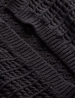 Šis medvilninis megztinis su stambia nėrimo apdaila suteikia tekstūros patrauklumą. atviras priekis leidžia lengvai sluoksniuoti kiekvieną sezoną.