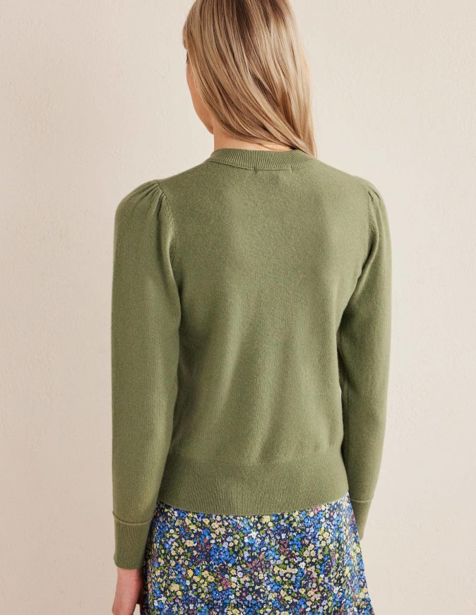 būtina turėti jūsų mezginių repertuarą. kašmyrui džemperiui suteikėme šiuolaikišką atnaujinimą su pūstais pečiais ir sutrumpintu ilgiu, kuris priglunda prie natūralaus juosmens.
