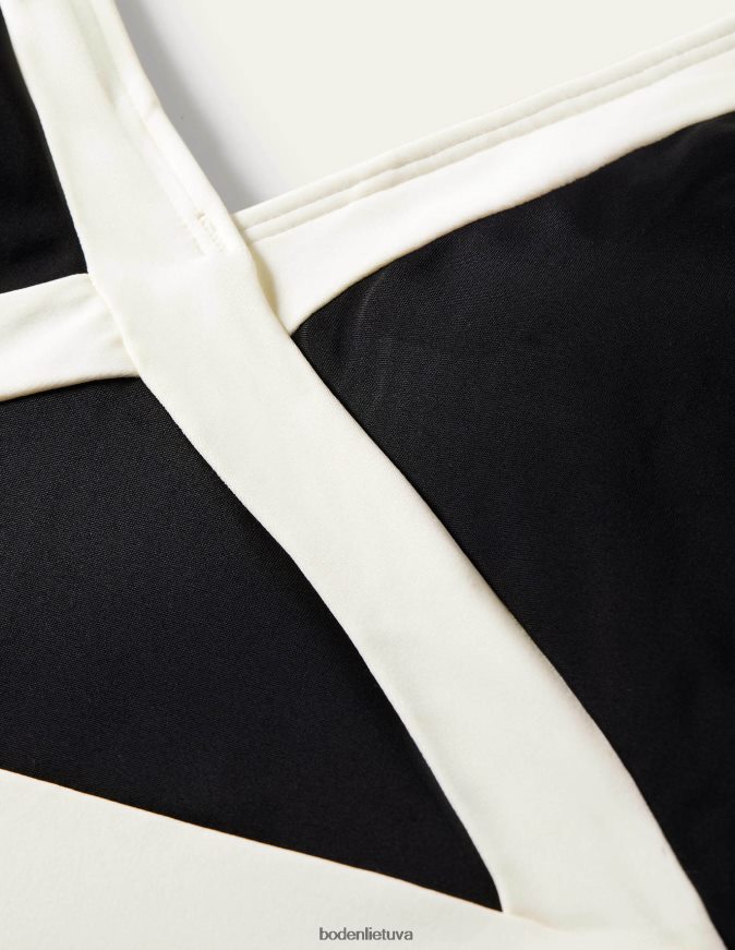 Šis maudymosi kostiumėlis su apykakle yra visiškai išklotas, kad būtų išlyginamas, ir padengtas lengvai paminkštintais fiksuotais kaušeliais ir kontrastingomis dailylentėmis.