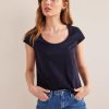 Dėl kvadratinio kaklo ir apkirpto silueto šį „Pima“ medvilninį viršų lengva nešioti tokį, koks yra arba sluoksniuotą. Susikurkite savo vakarą su derančiu sijonu.