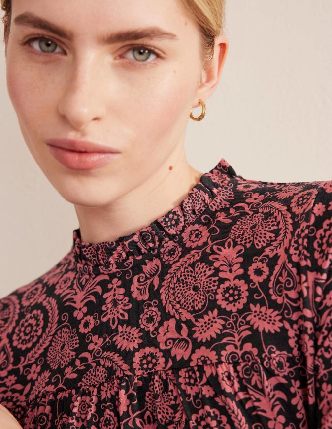 apranga lt Boden moterys lengva jungo mini džersio suknelė išblukęs rožių ir atogrąžų žavesys 284XZZ2215