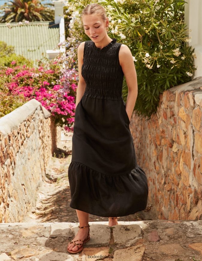 apranga lt Boden moterys lininė midi suknelė juodas 284XZZ76