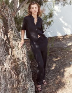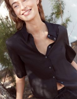 iš 100 % lino iškirpti marškiniai trumpomis rankovėmis yra natūraliai lengvi ir pralaidūs orui. susibūrimas prie jungo pabrėžia svyruojantį siluetą, todėl jis yra universalus sluoksniavimui.
