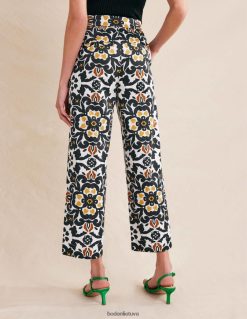 Šios sutrumpintos kelnės pasižymi plačiu raštu ir plačių kojų forma. žaiskite iki aukšto juosmens su užsegtais marškinėliais ar marškinėliais.