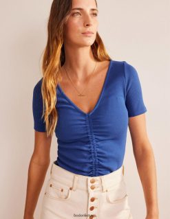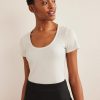 šių briaunuotų marškinėlių priekinė dalis išryškina švelniai prigludusį siluetą. jis iškirptas iš džersio, sumaišyto su medvilne, modalinis ir šiek tiek tamprus, kad pojūtis būtų švelniausias.