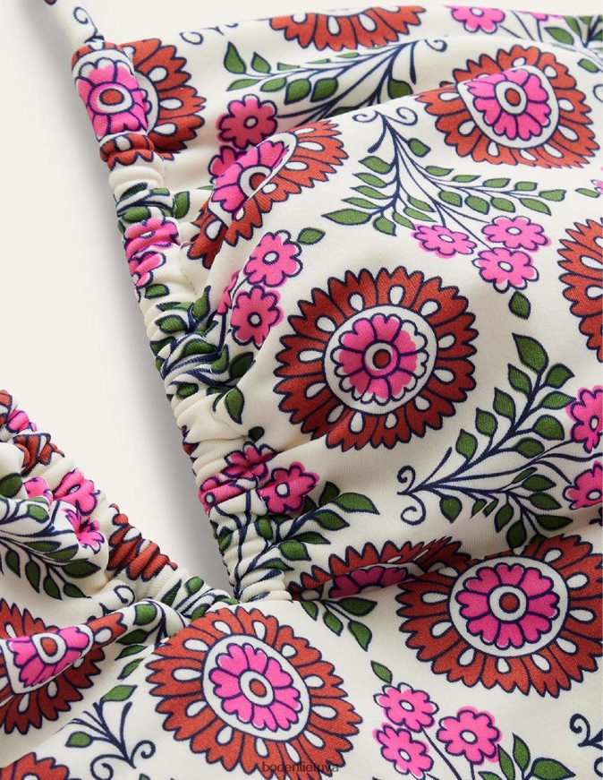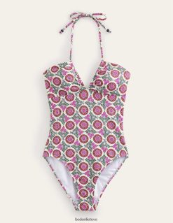 šiame juostiniame maudymosi kostiumėlyje yra surišamos petnešėlės, kurios gali būti suformuotos kaip apyrankė, kuri suteikia papildomos atramos. su iškirptu centru, raižytos detalės, fiksuotos kaušeliai ir aukštai pakelta kojelė suteikia glostančią formą.