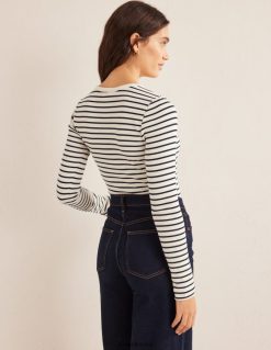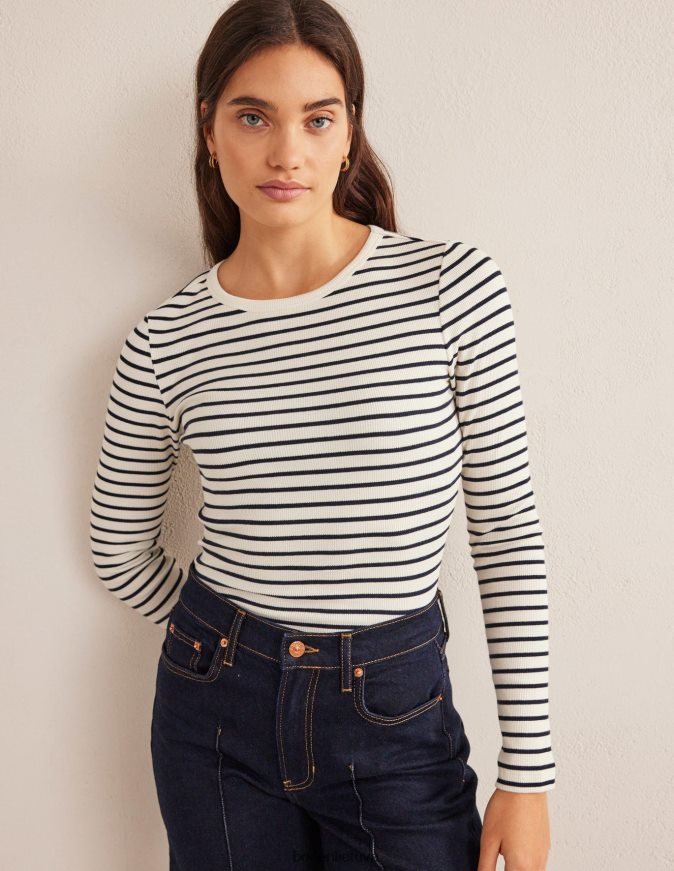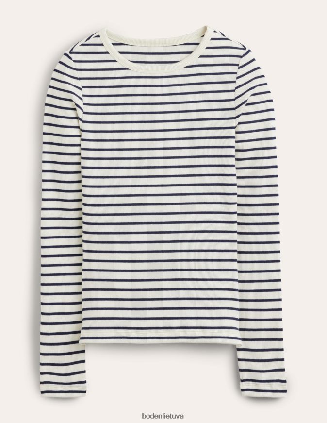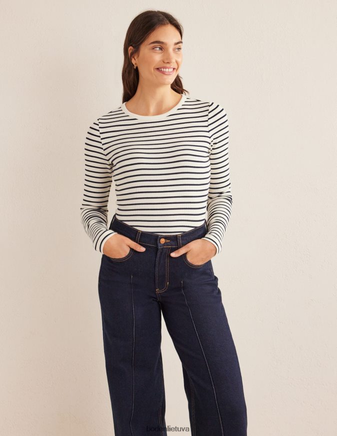 apranga lt Boden moterys medvilninis briaunotas viršus ilgomis rankovėmis dramblio kaulo/navy juostelė 284XZZ1797