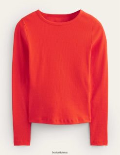 apranga lt Boden moterys medvilninis briaunotas viršus ilgomis rankovėmis raudona pop 284XZZ1993