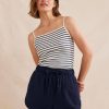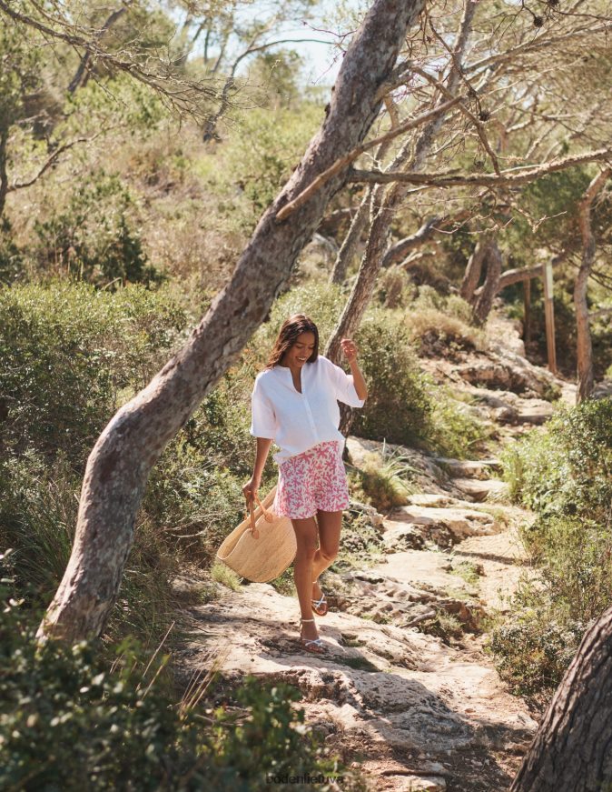 Šie šortai su raištu juosmeniu ir juosmeniu yra išskirtiniai, neprarandant komforto. Jie iškirpti iš lino ir medvilnės mišinio, kuris yra pralaidus orui ir yra orus šiltomis dienomis, iki aukštų, plačių kojų formos, kurias tikrai galima dėvėti.